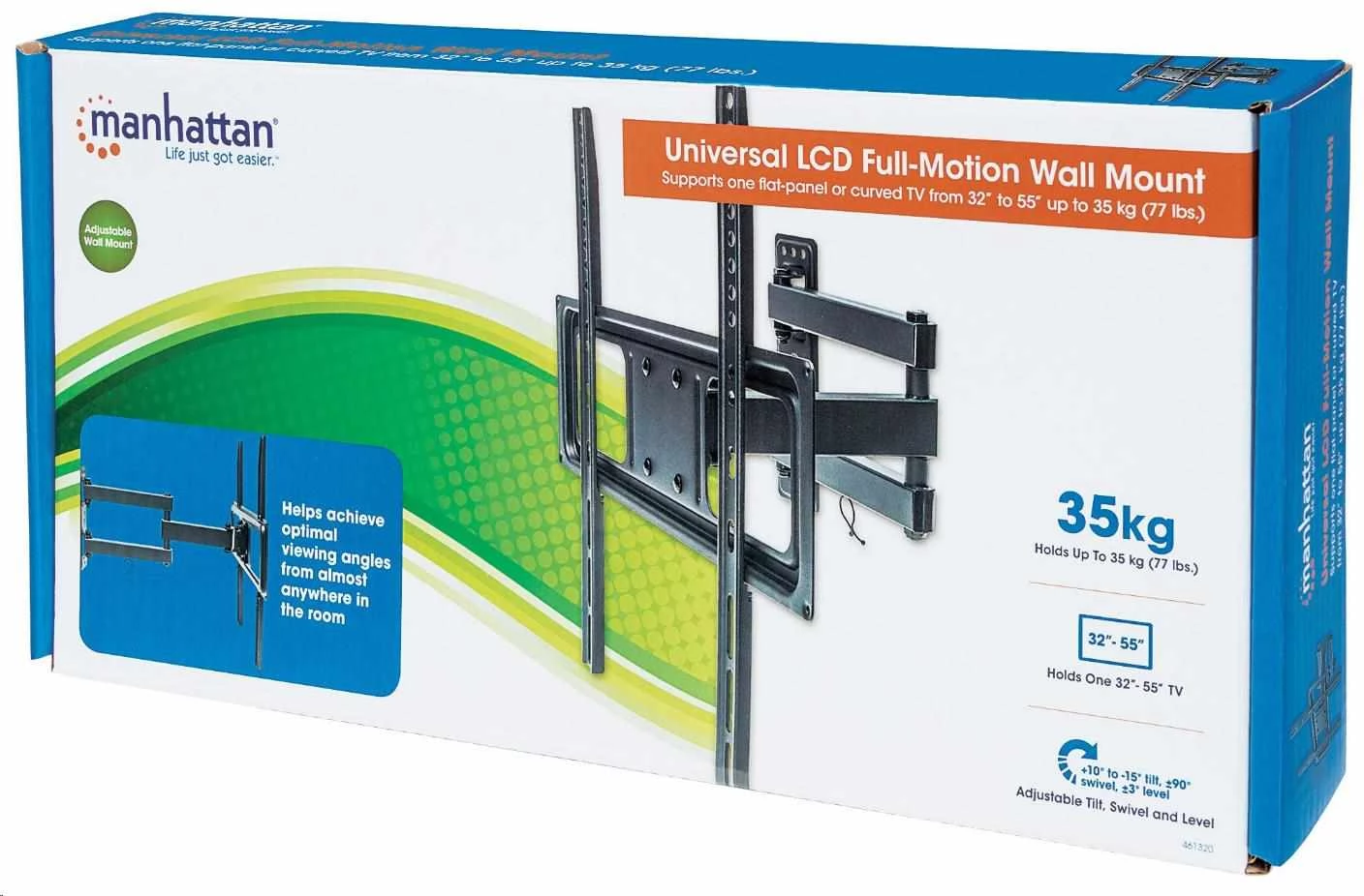 Potpuni pokretni nosači za Manhattan Universal Flat-Ecreen TV pomažu pristupiti optimalnim kutovima pristupa iz gotovo bilo kojeg mjesta u sobi s preciznim postavkama koje održavaju slike, kontraste i boje čiste, oštro i definirane. Zidni nosači s punim rasponom kretanja za Manhattan Universal Flat-Ecreen TV od Vesa kompatibilnih i kvalitetnih materijala uklapaju se u brojne veličine zaslona sa sigurnim i samouvjerenim podama. Idealno za stambenu, ugostiteljsku, učionicu i konferencijsku sobu, digitalni prikaz i druge komercijalne aplikacije, Manhattan Universal Flat-Ecreen TV, LCD ili TV iskustvo visokih performansi.