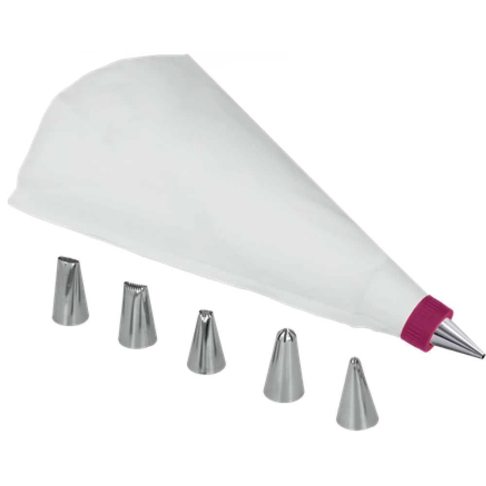 Komplet ekstrudera pjene. Sadrži 6 različitih glava, koje se mogu mijenjati ovisno o uzorku i debljini kojom želimo ukrasiti.
