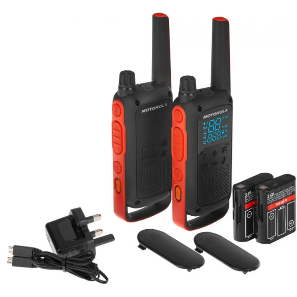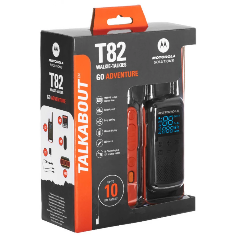 Motorola T82 nelicencirani walkie talkie bit će vaš savršen partner tijekom nadolazećih avantura! Ima robusnu konstrukciju i IPX2 certifikat, tako da je otporan na kišne kapi i prskanje vodom. Novi, skriveni zaslon oživljava čim trebate primopredajnik i olakšava komunikaciju. Pomoću gumba za uparivanje možete se još lakše povezati s drugim primopredajnicima. Ugrađeno LED svjetlo osigurava osvjetljenje u nuždi ako je potrebno, tako da se lako snalazite na mračnim mjestima. Uz domet od 10 km, Motorola Talkabout T82 osigurava da ostanete u kontaktu sa svojim prijateljima!