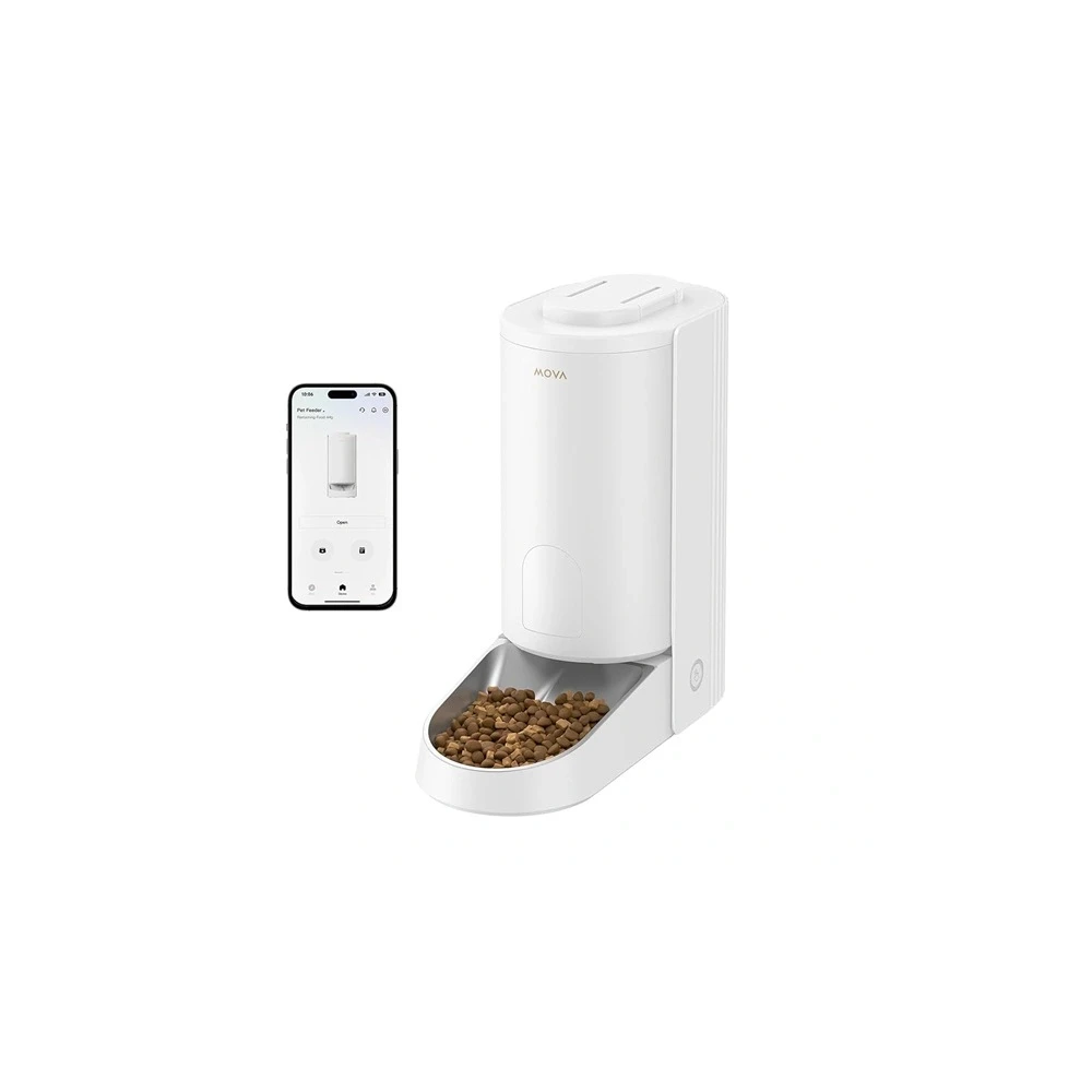 Najveća značajka Movine hranilice za mačke je to što je potpuno automatizirana i pametan dodatak, tako da uz pomoć prateće aplikacije Movahome možete njome upravljati čak i na daljinu putem svog telefona. Mislite li na svoju mačku dok putujete ili na poslu? Bez brige: samo unesite aplikaciju i već možete hraniti svog ljubimca unaprijed učitanom hranom.