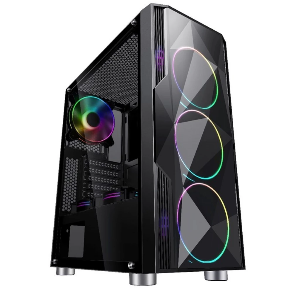 ATX format Midi-tower kućište za računalo s RGB vizualnim elementima i ugrađenim RGB ventilatorima.