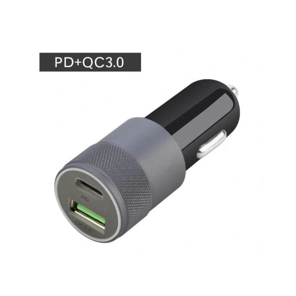 Auto punjač sa 1xUSB, 1x USB-C portom sa 18W izlaza.