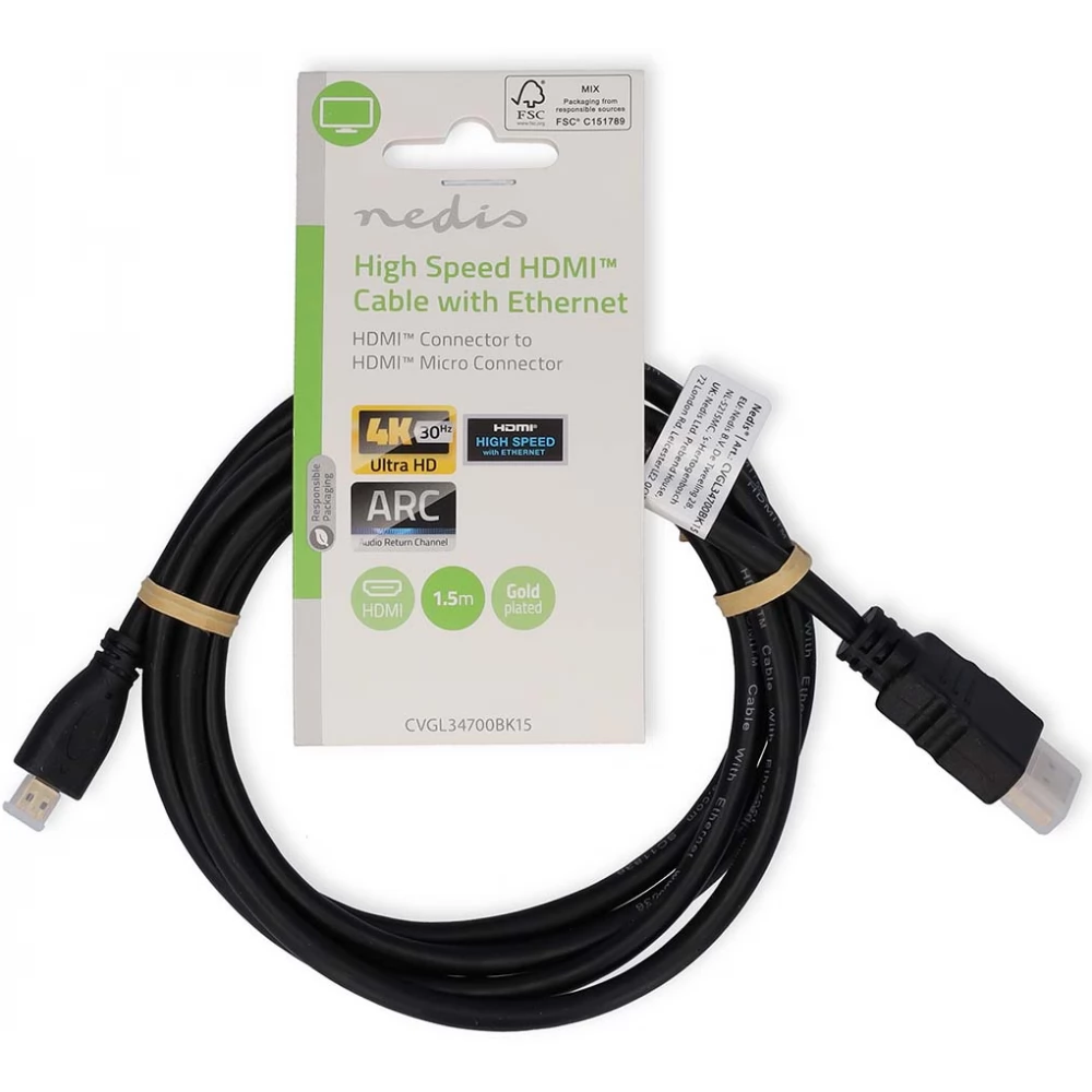 NEDIS HDMI Micro HDMI transformator Crno 1.5m CVGL34700BK15