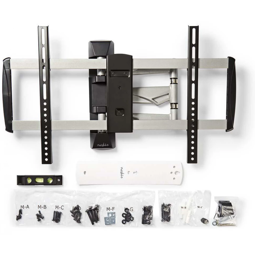 Premium-line zidni nosač od pero laganog aluminija za TV koji se može naginjati, okretati i okretati po želji. TV konzola ima libelu za savršeno horizontalno postavljanje, a zahvaljujući ugrađenom sustavu za vođenje kablova, kablovi su uredno i sigurno raspoređeni. Za brzu i jednostavnu montažu, paket uključuje sav potreban pribor za montažu uz priručnik.