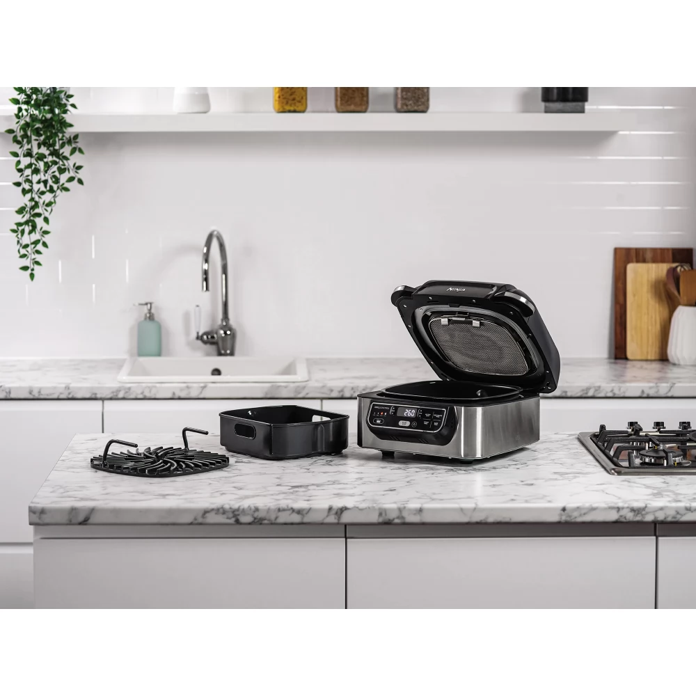 Uz Ninja Foodi Health Grill & Air Fryer možete brzo i jednostavno pripremiti svoja omiljena jela, pripremiti svježe i smrznute sastojke, uz autentično roštiljanje.