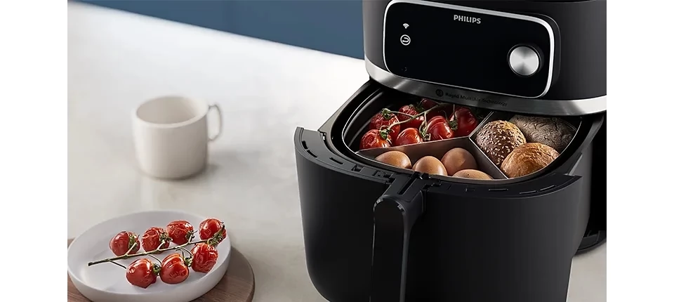 Sada možete pripremiti cijeli jelovnik odjednom. Odvojeni pretinci za glavna jela i priloge, tako da možete maksimalno iskoristiti svoj Airfryer - bez potrebe za miješanjem sirovih sastojaka.