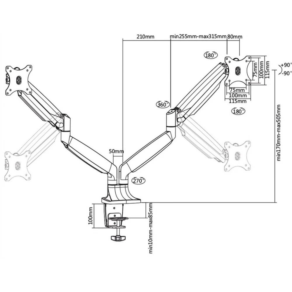 ROLINE LCD TV/Monitor stolni stalak 2 plin proljeće ruke