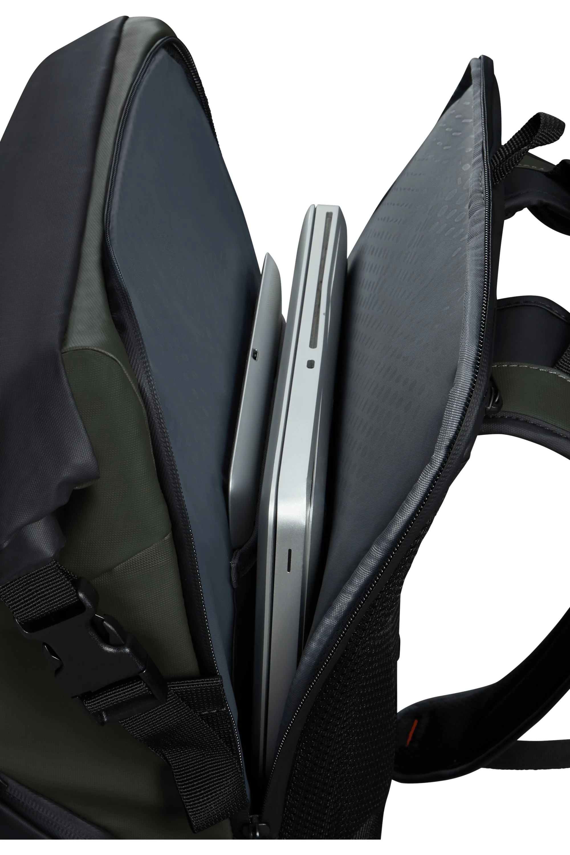 - Materijal: 100%vanjskog materijala izrađeno je od postindustrijski recikliranog najlona i reciklirane plastike PET nakon konzumacije. Najmanje 95 % unutarnjeg obloga i najmanje 90 % zatvarača izrađeno je od reciklirane plastike za kućne ljubimce nakon konzumacije. Potpuna upotreba plastike za kućne ljubimce nakon konzumacije, štedi 13 plastičnih boca za vodu (0,5-20 g) odlagališta