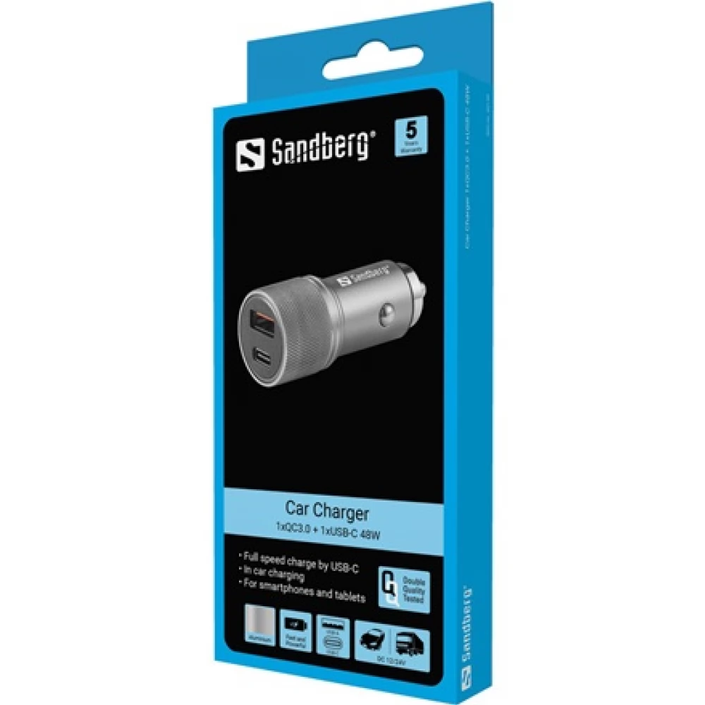 SANDBERG Vozač punjač 1xUSB USB-C 48W srebrno