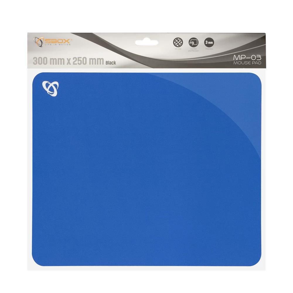 Predstavljamo preciznu podlogu za miš SBOX MP-03. Dimenzije 300x250 mm, debljine 3 mm, izrađene od celularne gume, s protukliznom površinom.