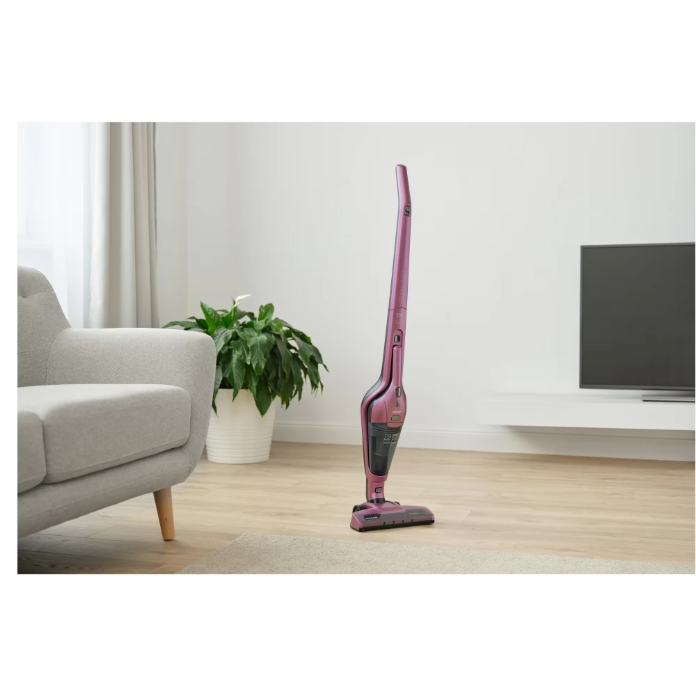 Za rad usisavača brine Li-ion baterija od 21,6 V kapaciteta 2000 mAh. Napunjenost baterije možete provjeriti pomoću ugrađenog LED indikatora kapaciteta. S potpuno napunjenom baterijom možete usisavati do 45 minuta, ovisno o upotrebi, i cca. Za potpuno punjenje baterije potrebno je 4-6 sati.