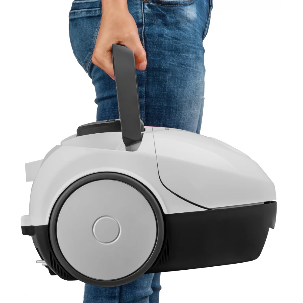 Usisavač opremljen mekim, gumiranim kotačima može se lako pomicati po bilo kojoj podlozi, au svim slučajevima podna površina je zaštićena od mogućih ogrebotina. Istovremeno, zbog svoje male težine, jednostavno vas prati na različitim rutama.