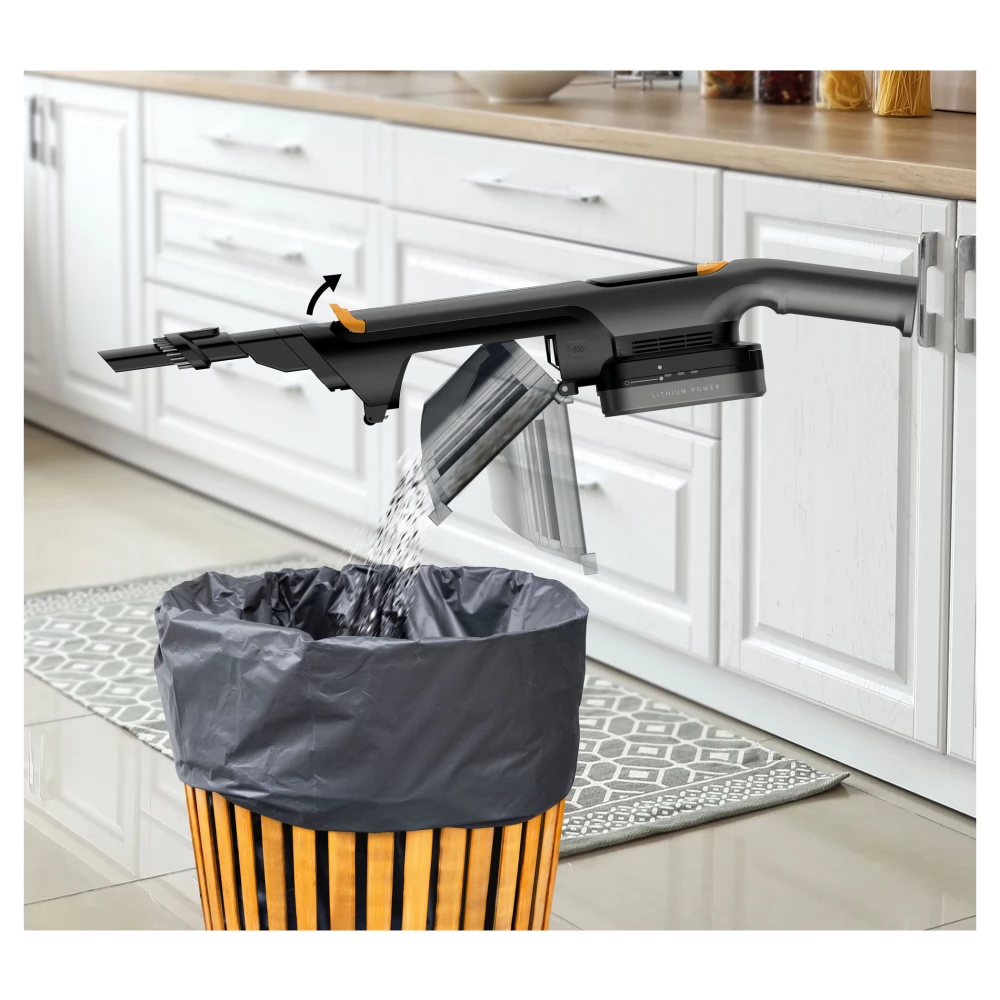 Ultra lagana (samo 0,875 kg) odvojiva ručna jedinica opremljena je kotačićima koji čine nevjerojatno lakim pomicanje po površinama. Praktičan pribor omogućuje vam uklanjanje prašine i prljavštine s namještaja, presvlaka, unutrašnjosti automobila i teško dostupnih mjesta. HEPA ciklonski filterski sustav hvata i najmanje čestice prašine.