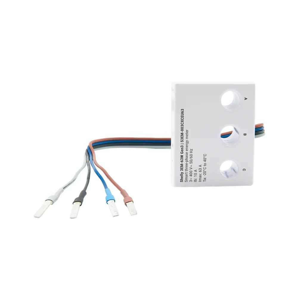 Shelly 3EM-63W GEN3 napredni je trofazni uređaj za izradu energije koji je posebno dizajniran za precizno praćenje potrošnje električne energije u tri odvojena faza ili tri neovisna jednofazna kruga. Zahvaljujući svom kompaktnom dizajnu, može se montirati izravno u električni ormar na prekidaču, tako da u električnom ormaru ne rezervira zasebni modul. Idealno za kućne i industrijske primjene.