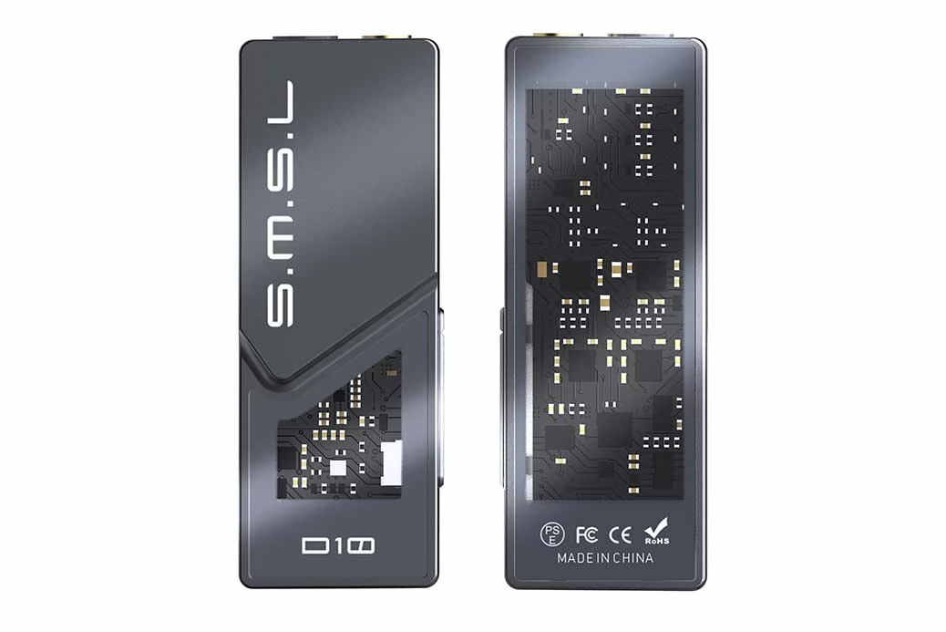 Prijenosno pojačalo za slušalice visokih performansi i DAC s dva Cirrus Logic CS43131 DAC čipa. Podržava do 32-bitne 384kHz PCM i DSD256 stope uzorkovanja. Ovi čipovi također pružaju značajno pojačanje za slušalice s do 500 mW izlazne snage na 32 ohma s dinamičkim rasponom od 121 dB. Što se tiče mogućnosti povezivanja D10, kao ulaz nalazimo USB-C konektor, a kao izlaz dvije vrste konektora za slušalice: 3,5 mm jack i simetrični 4,4 mm jack. Unatoč pristupačnosti, SMSL je D10 dao minimalistički, vrhunski dizajn, s prozirnim poklopcem koji nam omogućuje da vidimo korištene sklopove.