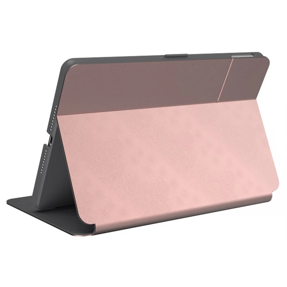 - Speckova najnovija obitelj Balance Folio iPad futrola razvijena 2020. je 20% tanja, 2x otpornija na habanje, 2,5x bolja zaštita rubova na strani zaslona i ima 50% više podesivih kutova gledanja od Speck iPad futrola proizvedenih prije 2017.
