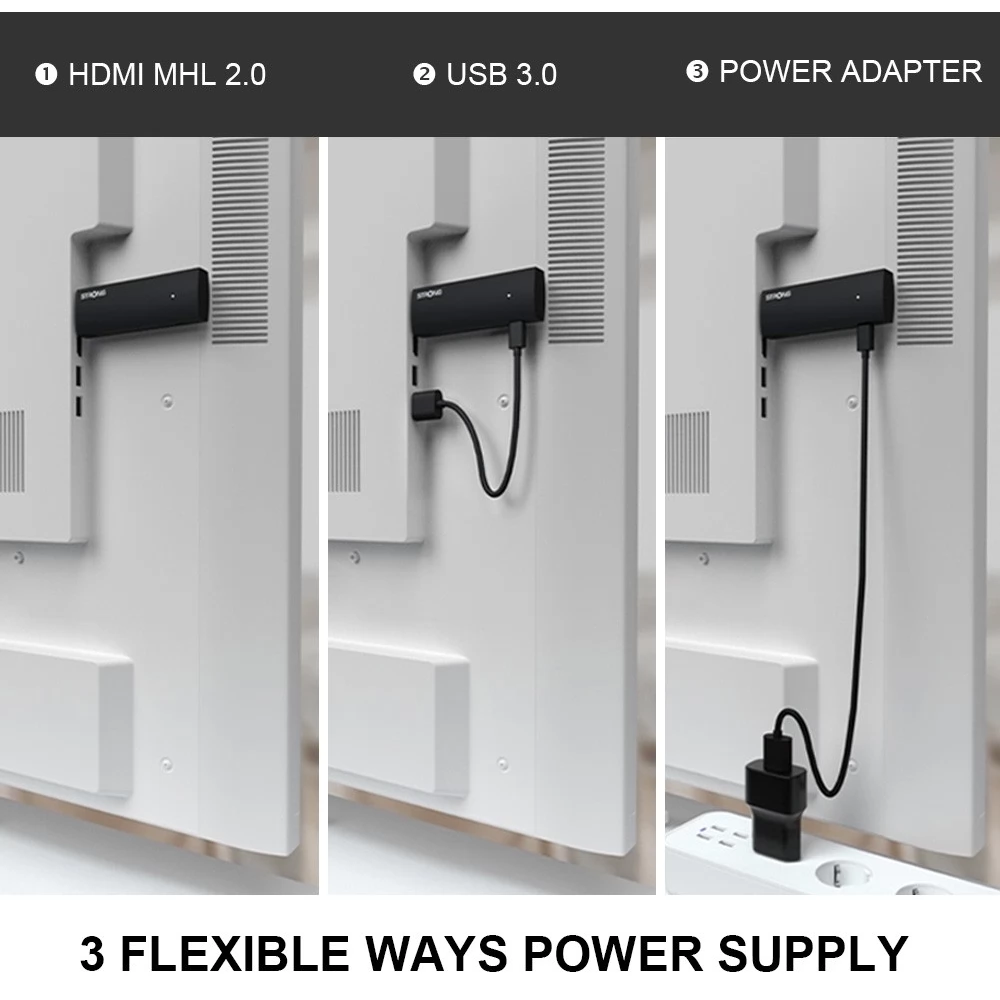 - Priključci: HDMI 2.1 sa CEC, 5 V/1 A DC mrežni adapter, Wi-Fi, Bluetooth