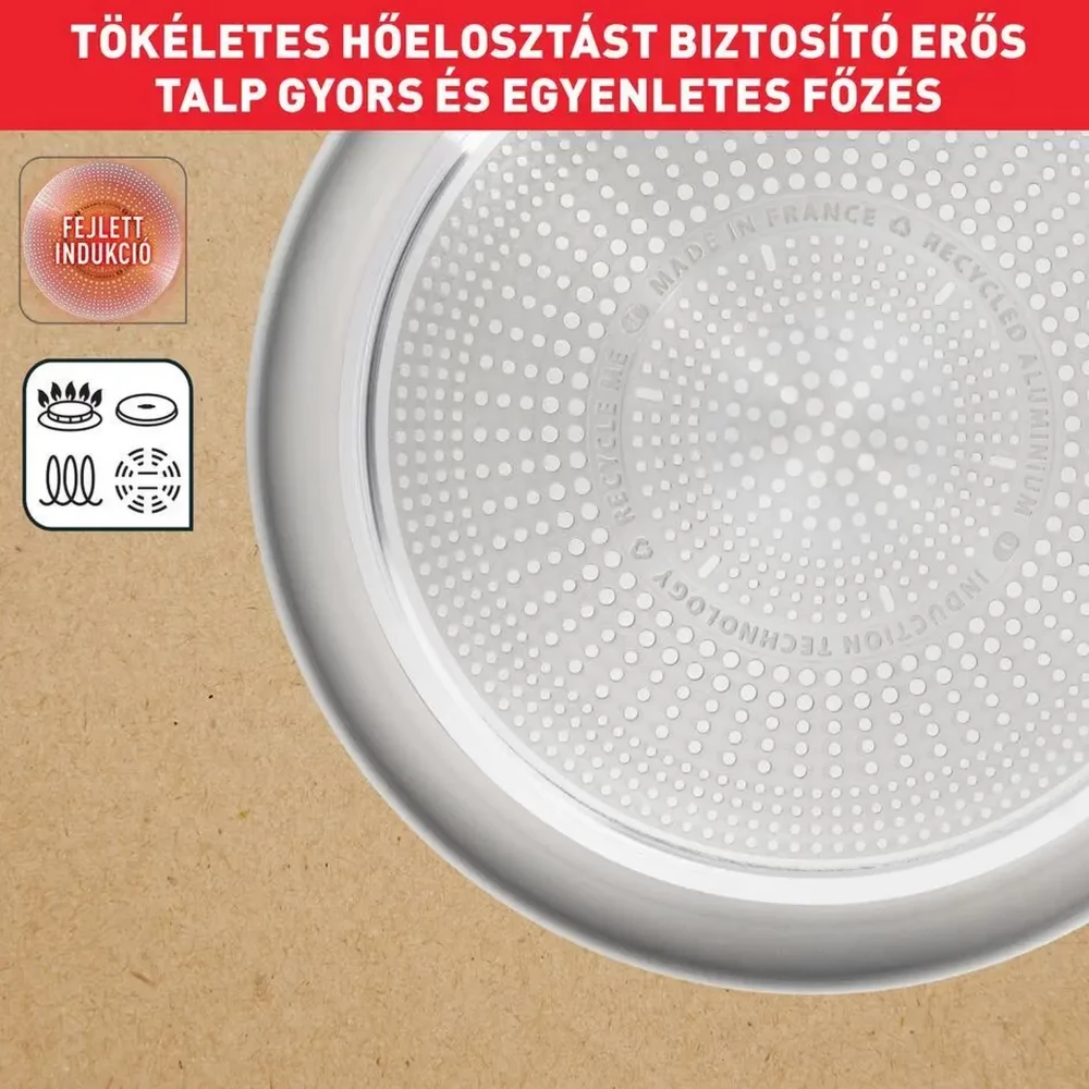 Tefal Thermo-Fusion postolje posuđa omogućuje brzo i optimalno provođenje topline na površini posude za savršeno pripremljena, ukusna jela. Kompatibilan sa svim vrstama ploča za kuhanje.