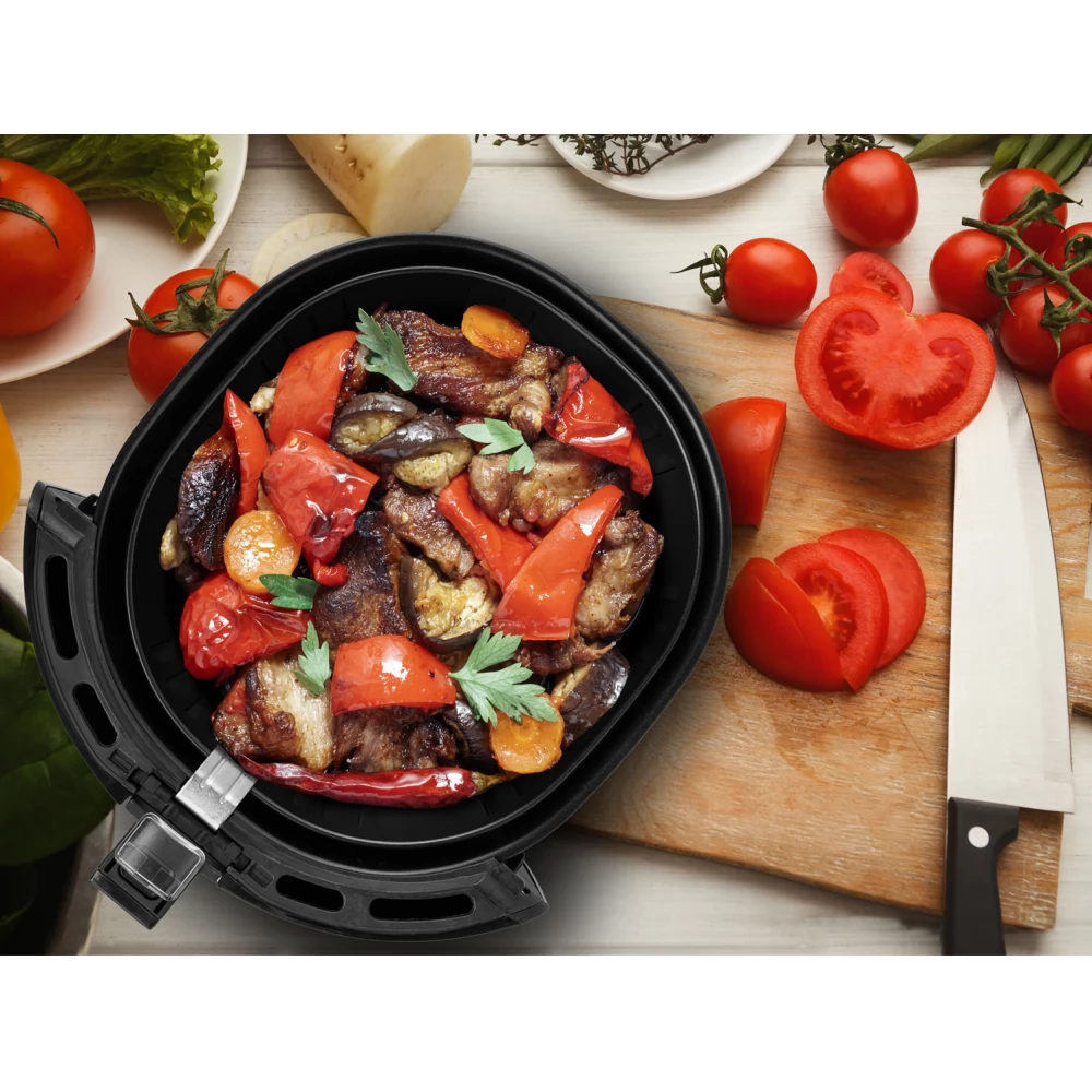 Možete ručno postaviti željeno vrijeme i temperaturu pečenja na digitalnom zaslonu ili odabrati između različitih programa kao što su čips, meso, perad ili riba. Kad je pečenje dovršeno, uređaj će se automatski isključiti.