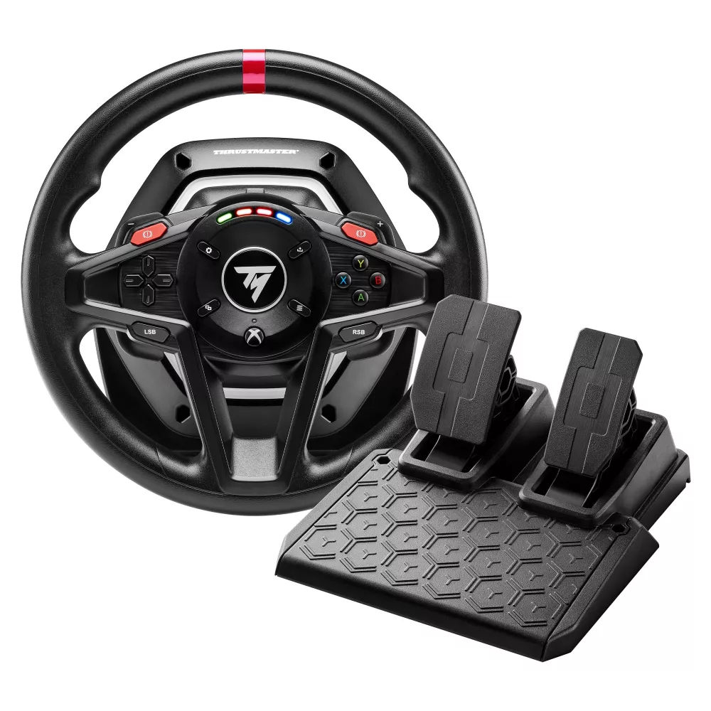 T128 se prilagođava svim stilovima vožnje zahvaljujući svom kutu okretanja od 270° do 900° i okruglom, laganom rubu koji u potpunosti iskorištava snagu povratne sile. Komplet pedala T2PM oslobađa vas upotrebe gamepada s magnetskim mjenjačima za trkaće upravljače, LED indikatorima brzine motora i 13 akcijskih tipki.