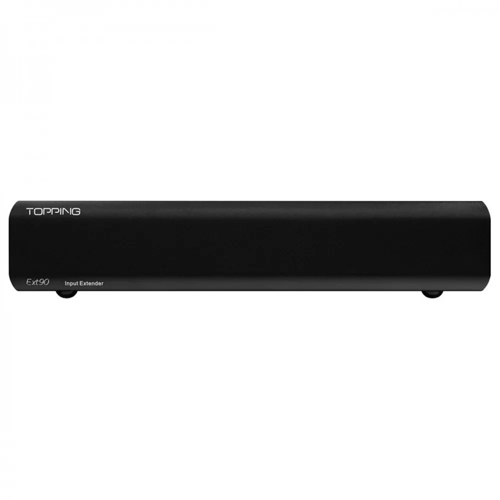 Ext90 je ekspanzioni uređaj za pretpojačalo Topping Pre90, koji u osnovi ima par RCA i par XLR ulaza, ali uz ekspanzionu jedinicu možemo povećati broj ulaza, tako da imamo ukupno 2 para RCA i 4 para XLR ulaza. Proširenje nam omogućuje povezivanje mnogo više izvornih uređaja na naš sustav. Spajanje PRE90 i EXT90 vrlo je jednostavno, potreban vam je samo poseban kabel koji se nalazi u paketu, a koji rješava kako napajanje uređaja tako i prijenos audio signala. Odabir između ulaza moguć je na pretpojačalu PRE90.
