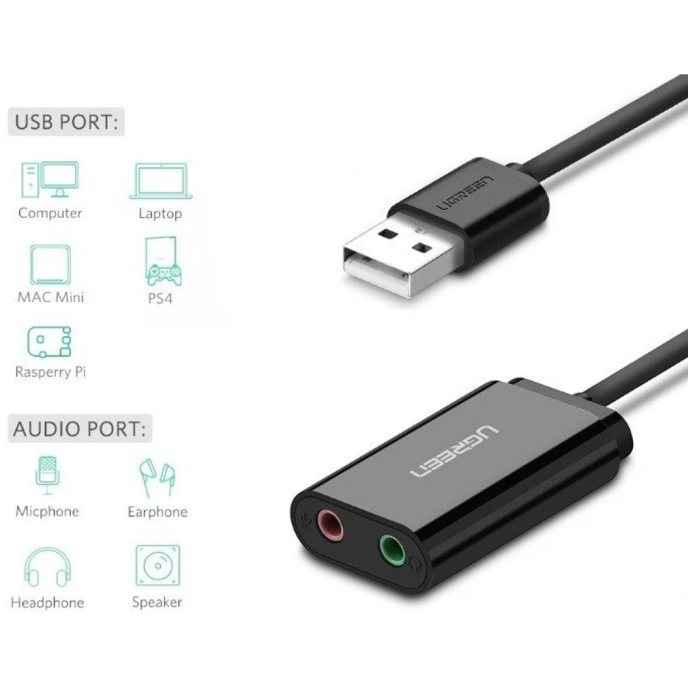 UGREEN US205 15 cm USB spoljašnjeg zvučna kartica crno