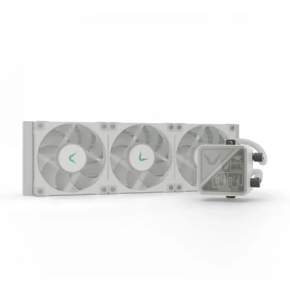 Kompaktno univerzalno vodeno hlađenje s 3 ventilatora od 120 mm s kontroliranim ARGB osvjetljenjem i PWM kontrolom brzine, radijatorom od 360 mm i mehanički dizajniranim blokom za vodeno hlađenje CPU-a koji također ima kontrolirano ARGB osvjetljenje. Poklopac pumpe može se okretati za 90 stupnjeva, prilagođavajući se orijentaciji kuće.