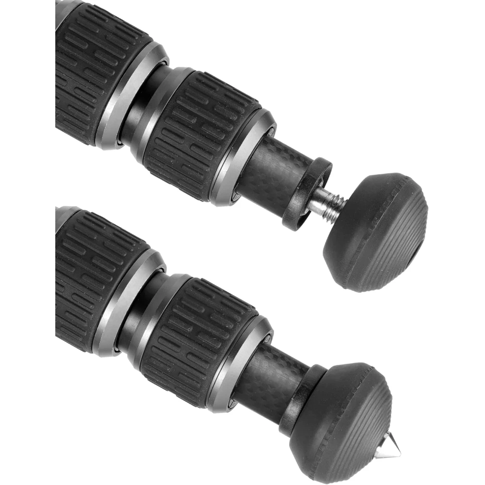 VEO 5 304CB250S je karbonski stalak od 4 dijela s maksimalnim promjerom od 30 mm. Noge se mogu otvoriti u tri različita kuta (23°, 50° i 80°) pomoću tihog gumba, tako da ga možete koristiti u različitim položajima i po potrebi prilagoditi razinu za neravan teren.