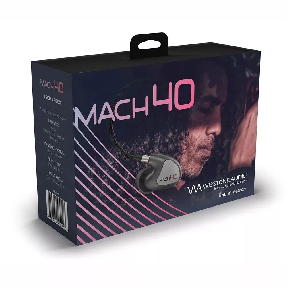 Uravnotežena i glatka. Ovo je najbolji način da se opiše ton MACH 40. Savršeno za one koji žele iznimno glatko iskustvo slušanja. MACH 40 opremljen je dvostrukim BA basovima, dvostrukim BA srednjim/visokim drajverima u 3-staznom sustavu skretnica. Dodaci uključuju kvalitetnu torbicu PELICAN™.