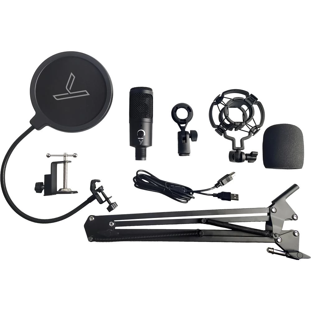 STREAMER 2.0 studio kit savršen je početni paket za streaming, pripremu podcasta, online igranje, snimanje ili komunikaciju s prijateljima. STREAMER 2.0 je kondenzatorski mikrofon, višesmjeran, povezan putem USB-a, tako da nema potrebe za kompliciranim ožičenjem ili dodatnim napajanjem mikrofona - samo ga priključite i spremni ste za korištenje mikrofona. Set uključuje pop filter, antivibracijski nosač, vjetrobran, podesivo studijsko postolje i USB-B na USB-A kabel. Stalak uključen u set može se rotirati i naginjati u dvije osi, maksimalno se prilagođavajući individualnim potrebama postavljanja. Vertikalni doseg stalka može biti do 750 mm.